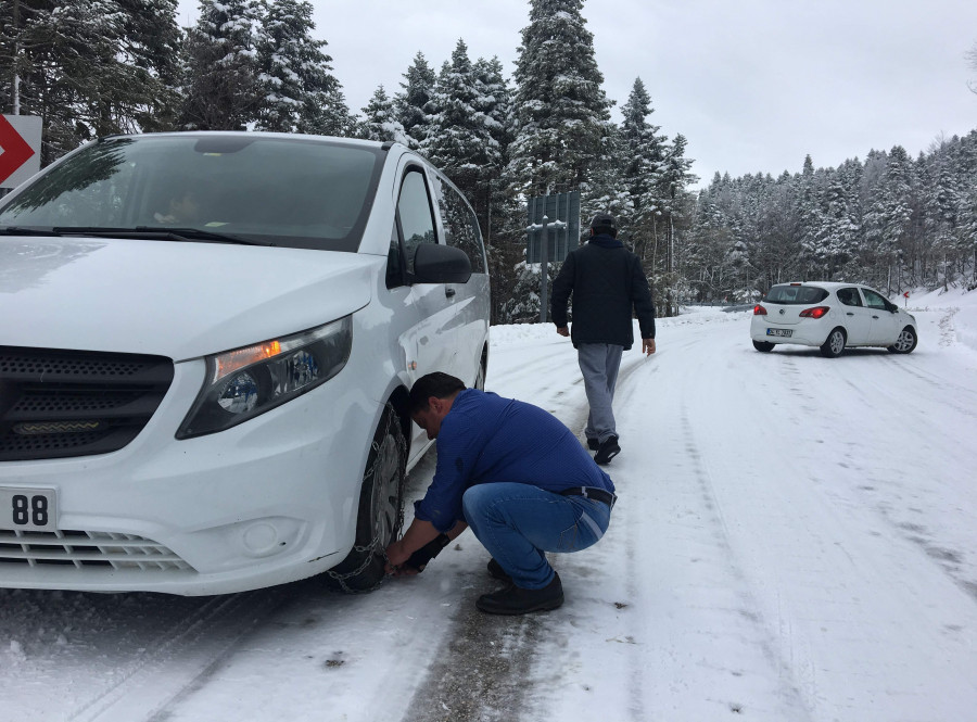 Uludağ'a hazırlıksız çıkan sürücüler ise zor anlar yaşadı. Buzlanan yolda çıkamayan Arap turistler geri dönmek zorunda kaldı. Arap turistleri minibüsle getiren bir minibüs sürücüsü ise zincir takmak için uzun süre çabaladı.