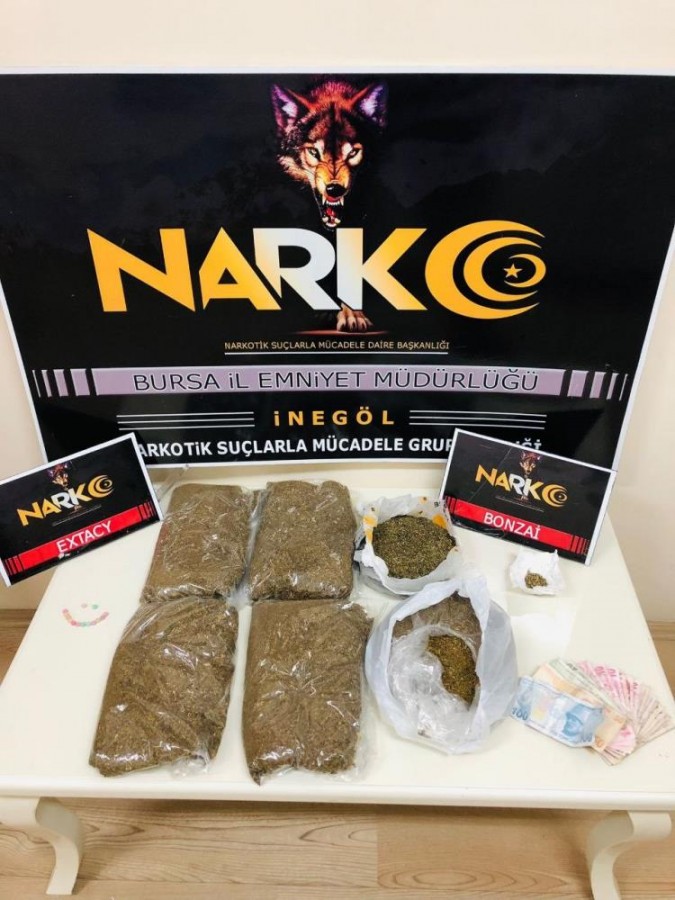Bursa'nın İnegöl ilçesinde polis ekiplerince düzenlenen operasyonda 2.6 kilogram bonzai uyuşturucu maddesi ele geçirilirken, 2 şahıs gözaltına alındı.