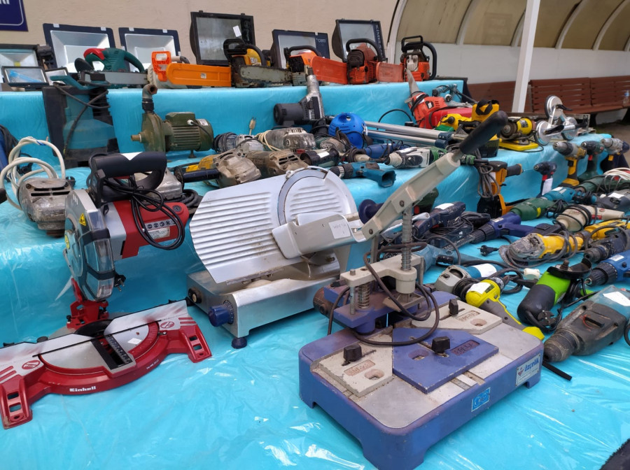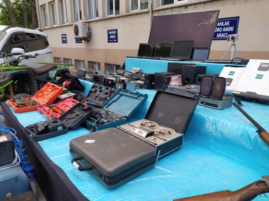 Şüphelilerin emniyetteki işlemleri devam ederken, ele geçirilen çalıntı malzeme ve araçlar emniyetin bahçesinde sergilendi.