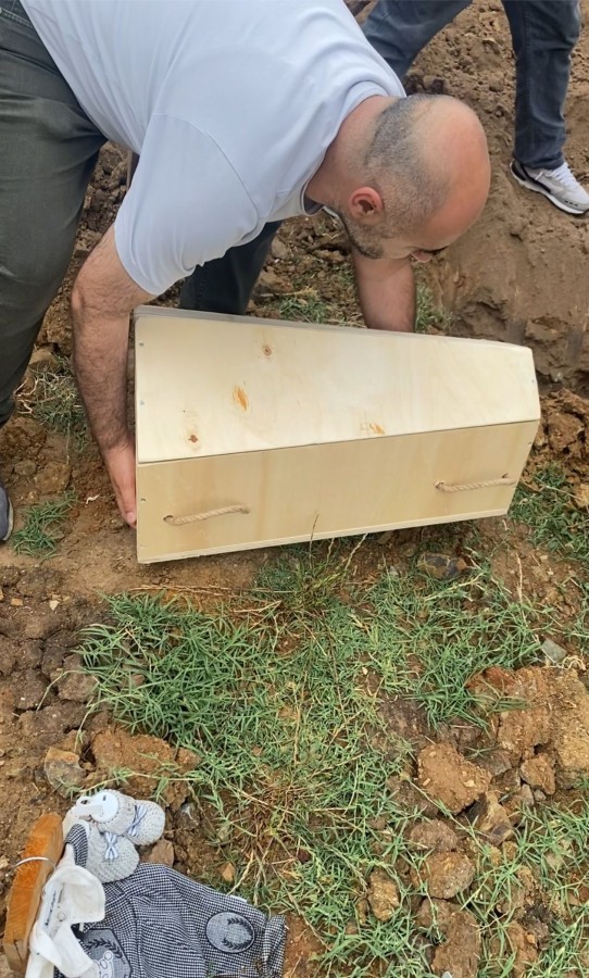 Bebeğe aldıkları kıyafetleri giydiremeden kaybettiğini belirten baba, "2 oğlum ve 1 kızım var. Hiçbirinin sağlık sorunu yok. Mezarlığa geldiğimizde oğlumu kaldırmakta güçlük çektim. Kendimizi çok hazırlamıştık, kıyafetlerini bile giydirmek nasip olmadı. Annesi ilk haberi aldıktan sonra ameliyatının zedelendiği söylendi. Şu anda evde istirahat halinde, onu da yalnız bırakmak istemiyorum. Ablası, kardeşi hepimiz çok üzgünüz. Ailece yıkıldık. Bebeğe aldığımız kıyafetlerin hiçbirini giydiremedik. Umarım onlar bir başkasına nasip olur. Biz onları severek almıştık" dedi.