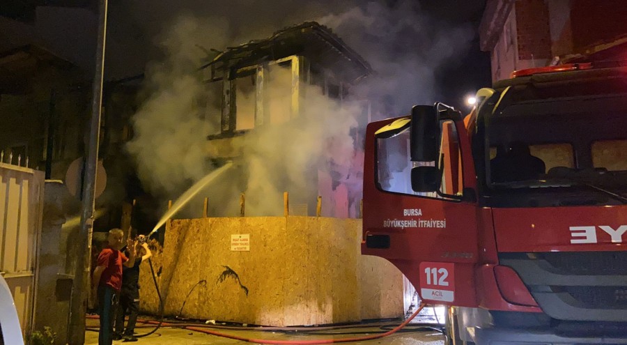 Bursa'nın İnegöl ilçesindeki 2 katlı metruk bina alev alev yandı.