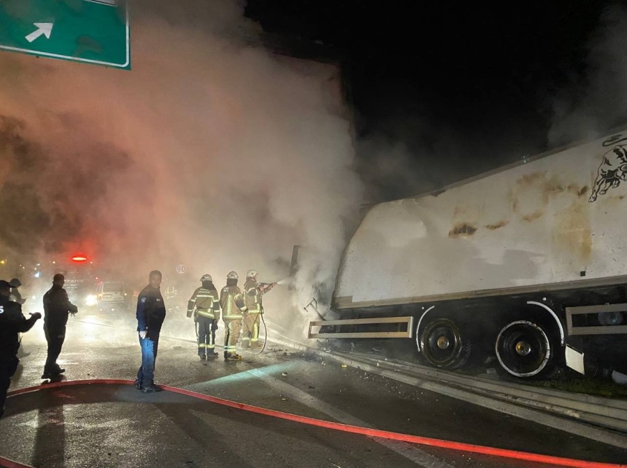 Kamyonun yatak kısmında bulunan Selahattin Kanay ve Erkin Şeydanur ise alev alan kamyonun içerisinde sıkıştı. Kazayı gören diğer sürücülerin ihbarı üzerine olay yerine çok sayıda itfaiye, polis ve sağlık ekipleri sevk edildi. Olay yerine gelen polis ekipleri başka bir kazanın yaşanmaması için yolda güvenlik önlemi alırken, itfaiye ekipleri de alev topuna dönen kamyona müdahale etti. İtfaiye ekipleri yangını yaklaşık yarım saat müdahale sonucu söndürdü. Çarpışmanın etkisiyle yola fırlayan Murat Kalbayır ve Ömer Faruk Erkoyuncu, sağlık ekiplerinin olay yerinde yaptığı ilk müdahalelerin ardından Bursa Şehir Hastanesi'ne kaldırıldı.