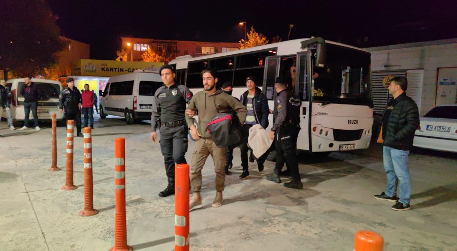 Süleymaniye ve Sinanbey Mahallesi'ndeki 2 adrese düzenlenen operasyonda, apartmanlardaki Suriye uyruklu 20 kişi yakalanarak gözaltına alındı.