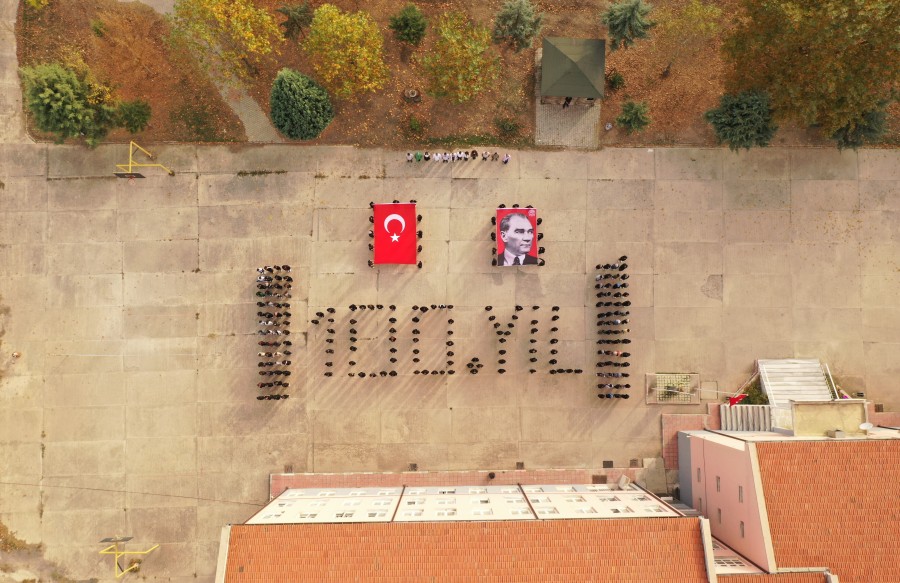 Bursa'nın Orhaneli ilçesindeki Türkan Sait Yılmaz Anadolu Lisesi öğrencileri koreografi çalışması gerçekleştirdi. 230'a yakın öğrenci ve öğretmenleri ile birlikte okul bahçesinde 100. Yıl koreografisi yaptı.