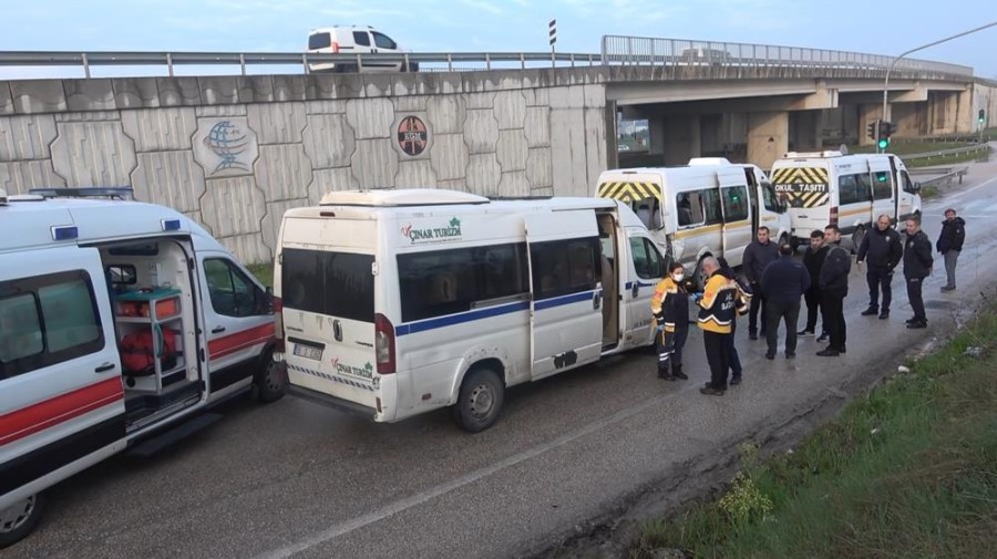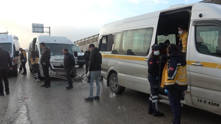 Bursa'da işçi taşıyan üç servis minibüsü birbirine çarptı. Kazada, yaralanan 15 işçi bölgedeki hastaneye kaldırılırdı. Yaralıları almak için gelen bir ambulans ise çamura saplandı.