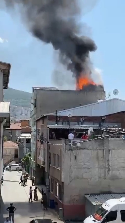 Bursa'da 4 katlı bir binanın çatı katındaki kuş kümesinde yangın çıktı. Kısa sürede büyüyen alevler çatıyı sararken, yangın itfaiye ekiplerince söndürüldü.