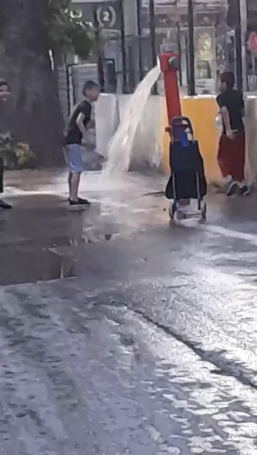 Yangın vanasını açıp altına girdiler