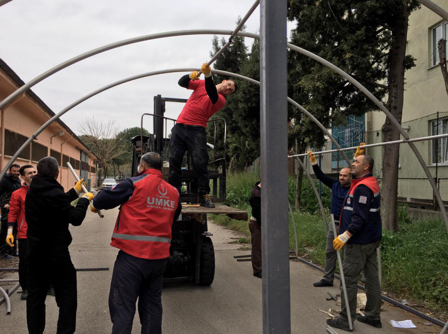 Diğer yandan Bursa'da İl Afet ve Acil Durum Müdürlüğü ekipleri de 8 çadırı kurup Sağlık Müdürlüğü'ne teslim etti. Korona virüsle mücadele kapsamında bu çadırların hastanelerin bahçelerinde kullanılacağı öğrenildi.