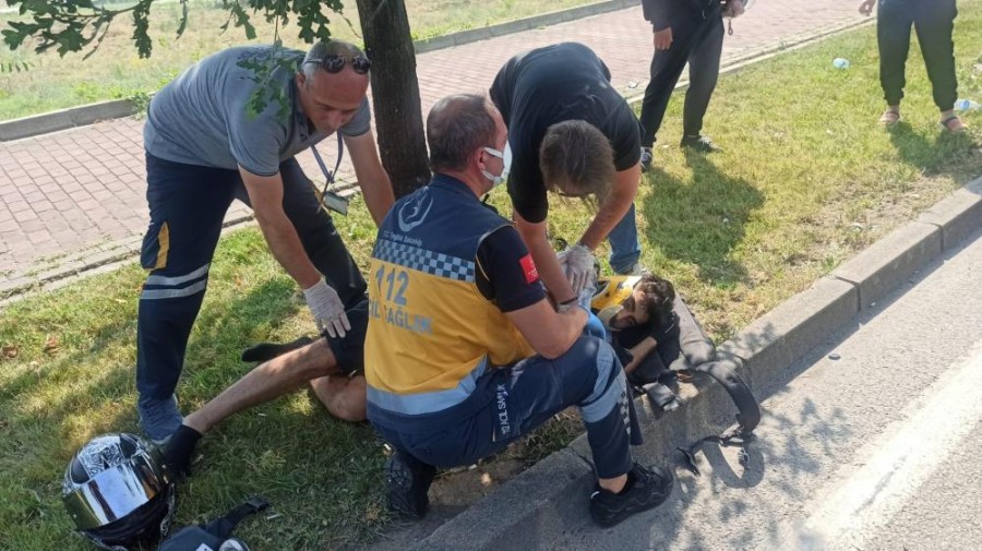 Kazanın etkisiyle 150 metre savrulan motosikletin sürücüsü için çevredekiler yardıma koşarken, durum da 112 Acil Çağrı Merkezi'ne bildirildi.
