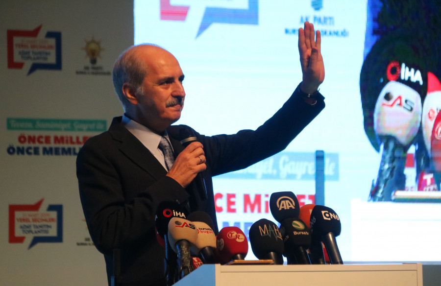 AK Parti Bursa İl Başkanlığı tarafından düzenlenen belediye başkan aday tanıtım toplantısı, AK Parti Genel Başkanvekili Numan Kurtulmuş'un katılımıyla Merinos Atatürk Kongre ve Kültür Merkezi'nde gerçekleştirildi. Programda konuşan Kurtulmuş, "Seçim kampanyasının en güzel şekilde geçmesini temenni ediyorum. İnşallah bu seçim cumhurbaşkanlığı yönetim sistemine geçişinden sonra ilk seçim özelliğini taşıyor. Milletimiz hangi istikamette gideceğini bir yerel seçim olmasına rağmen yeniden Cumhurbaşkanımız Recep Tayyip Erdoğan'ın önünü açacak, Cumhur İttifakı'yla Türkiye yeni bir döneme geçecektir" dedi.