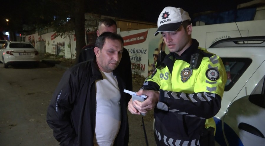 Alkolmetreyi karşısında gören sürücü, üflediği cihazda 0.34 promil alkollü çıkınca hafif ticari aracın bağlanıp ehliyetini de 6 ay kaptıracağını öğrendi. Bunun üzerine dakikalarca itiraz eden sürücü, kendini 'Ben ticaret yapıyorum, aracımı bağlayamazsınız' diyerek savundu.