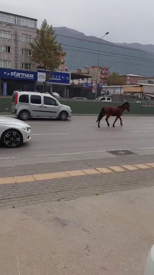 Bursa'da ana yola çıkan başıboş at tehlike saçtı. O anlar vatandaşların kamerasına yansıdı.