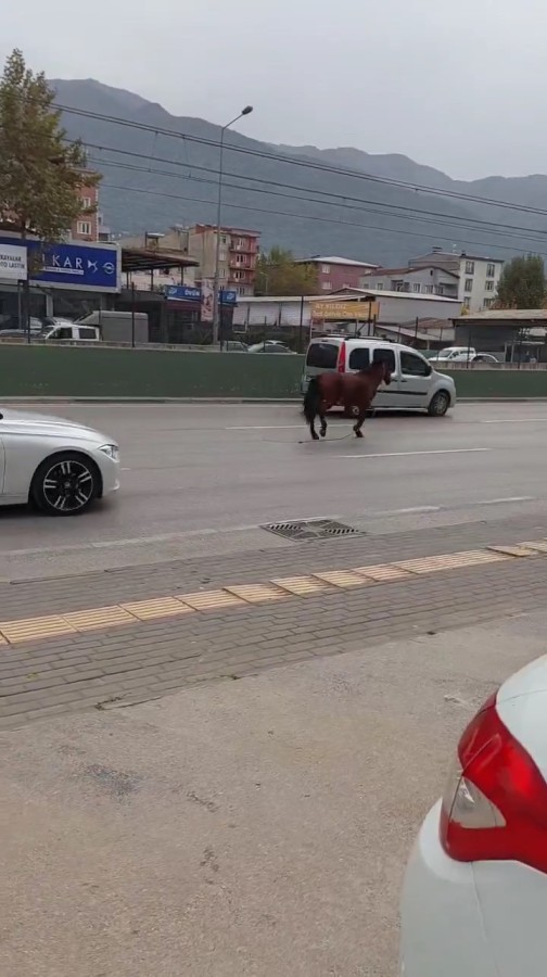 Merkez Yıldırım ilçesine bağlı Hacivat mevkii Bursa-Ankara yolunda başıboş at orta şeride geçip ilerlemeye başladı.