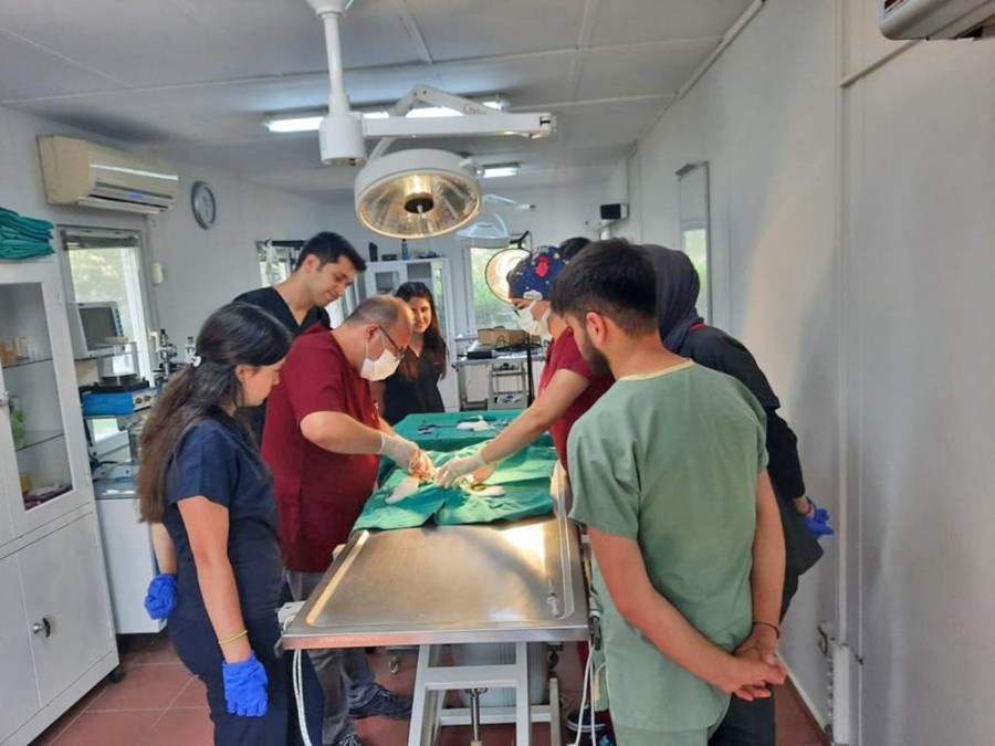 Ameliyat sonucunda yaralı kedi sağlığına kavuşurken veteriner fakültesi öğrencileri de Veteriner Hekim Dr. Hakan Tan'dan uygulamalı olarak ameliyat eğitimi almış oldu.
