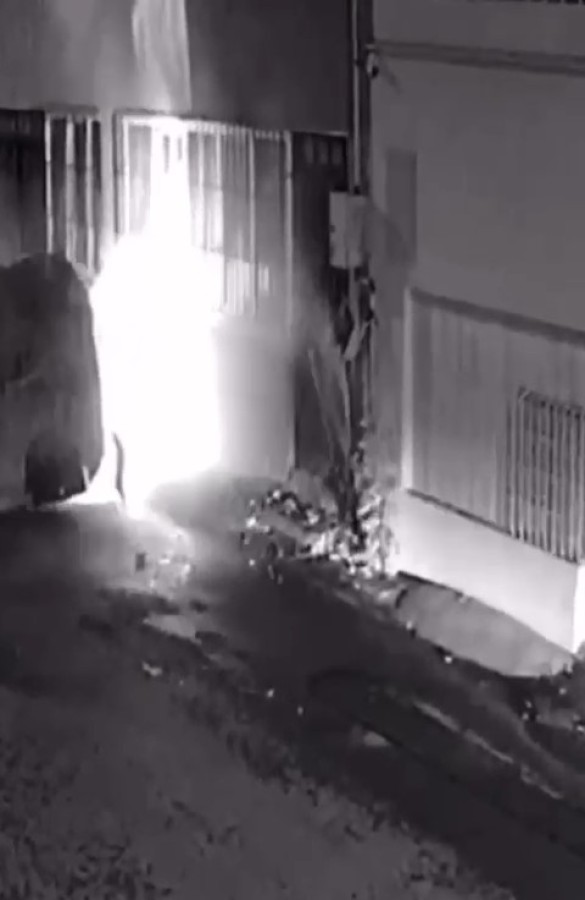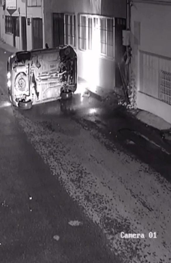 Yürekleri ağza getiren kaza anı başka bir binanın güvenlik kamerasına yansıdı. Polis, olayla ilgili tahkikat başlattı.