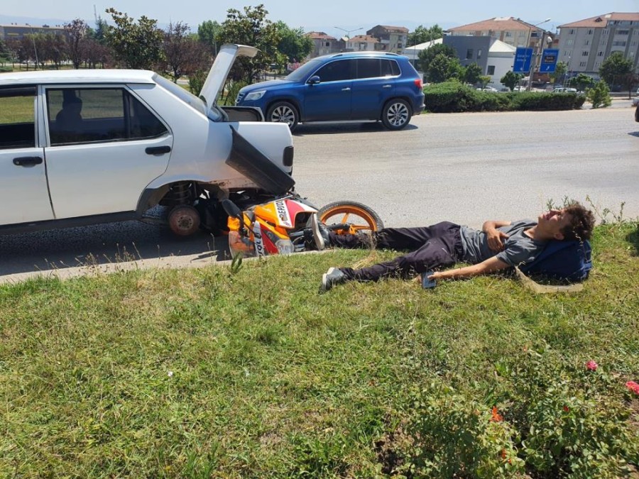 Bu sırada aynı istikamette seyir halinde olan Enes B. yönetimindeki 16 SGA 33 plakalı motosiklet, otomobile arkadan çarptı.