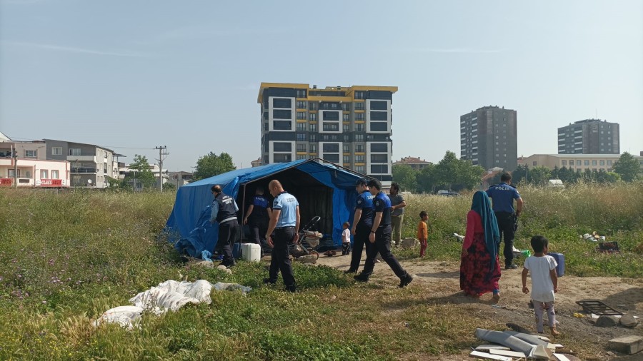 Bursa'da vatandaşların şikayeti üzerine harekete geçen Osmangazi Belediyesi zabıta ekipleri, boş arsalara kurulan göçebe çadırlarını ve başıboş atları topladı.