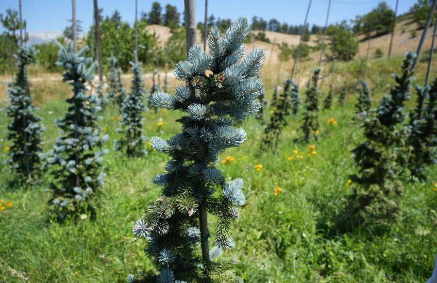 Türkiye'de dış mekan bitkilerinin 5 yıl öncesine kadar ithal edildiğini fakat yerli üretimle birlikte artık ihracata başlandığını aktaran Sakarya, "Ürettiğimiz ürün 'hopsi mavi ladin' diye geçiyor. Bu bölgeye uygun bitkiler yapmaya çalışıyoruz. Dolayısıyla bu bitki bizim için çok ideal. Mavi ladin yüksek rakım sever, sert kışlar için uygundur. Bizim bulunduğumuz bölge de buna çok müsait. Türkiye'de Karadeniz Bölgesi'nin bir kısmında yapılıyor. Ege Bölgesi'nde Ödemiş-Salihli arasında bulunan bölgede üretiliyor. Devlet desteği ile Bursa'da Kestel bu işi iyi yapmaya başladı. Onlar dünya markası oldu ama biz de bölge markası olma yolunda ilerliyoruz. Onların izinden ilerleyeceğiz. Şu an bulunduğumuz bahçede 500 adet var. Bu bitkiler daha önceki yıllarda ithal getirilirdi. Son 5 yıldır ithalat durdu sayılır, Türkiye kendi ihtiyacını karşılamaya başladı. Yavaş yavaş da ihracata dönmeye başlayacak. İspanya ve Hollanda'ya ürün yapan firmalar var. Bizim de bunları yakalamamız lazım, bölgeye ekonomik bir değer katmamız lazım" dedi.