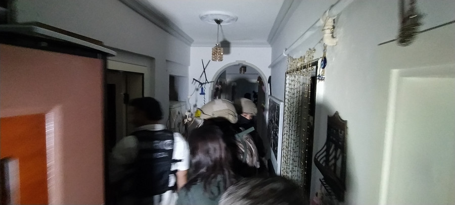 Yapılan baskın sonucu yüklü miktarda uyuşturucu madde ve silah ele geçirilirken arama sırasında kanepenin içerisinden yavru kedi çıktı.