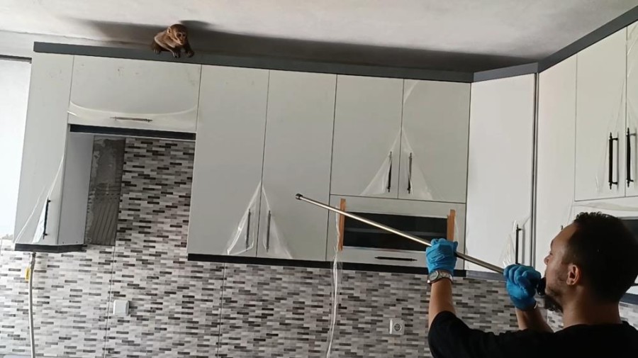 Bursa'da bir evin mutfağına giren yavru maymun, nefes kesen operasyonla yakalandı