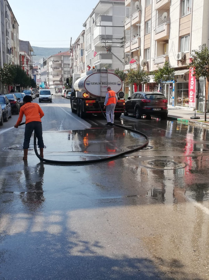 2 günlük sokağa çıkma yasağını fırsata çeviren Gemlik Belediyesi Temizlik İşleri Müdürlüğü ekipleri ilçe genelinde büyük temizlik hamlesi başlattılar. Sabah erken saatlerden itibaren tüm personeli ile sahaya inen Temizlik İşleri Müdürü Ahmet Dedetürk ana arterlerden başlayarak çalışmalara başladılar.