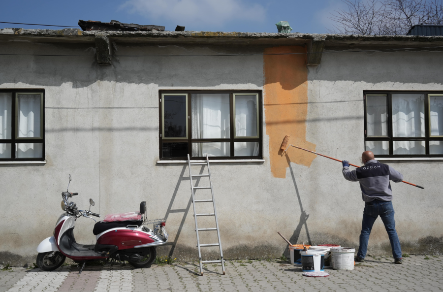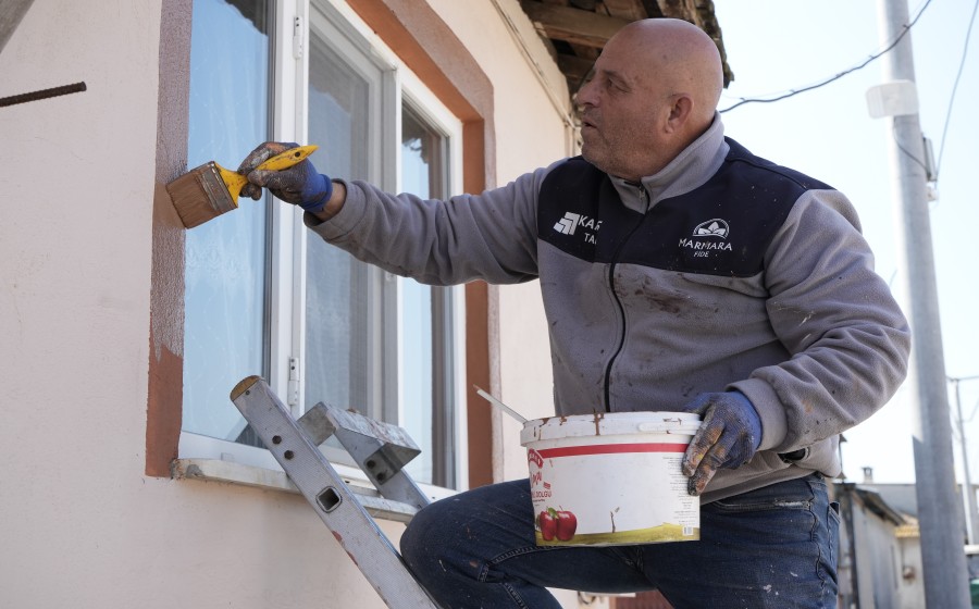 Bursa'da bir muhtar adayı seçim vaadi olarak verdiği sözü yerine getirmek için yaşadığı köydeki tüm evleri kendi imkanlarıyla boyuyor.