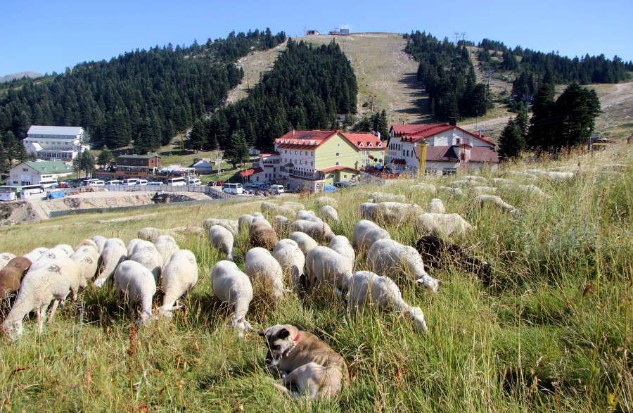 Türkiye'nin en önemli kış turizm merkezlerinden olan Uludağ'da kışın yerli ve yabancı turistlerin kayak kaydığı pistler havalar ısınınca koyun sürülerine kaldı. Kışın zengin turistlerin kaldığı lüks otellerin önünde otlayan koyunlar görenleri şaşırtıyor.