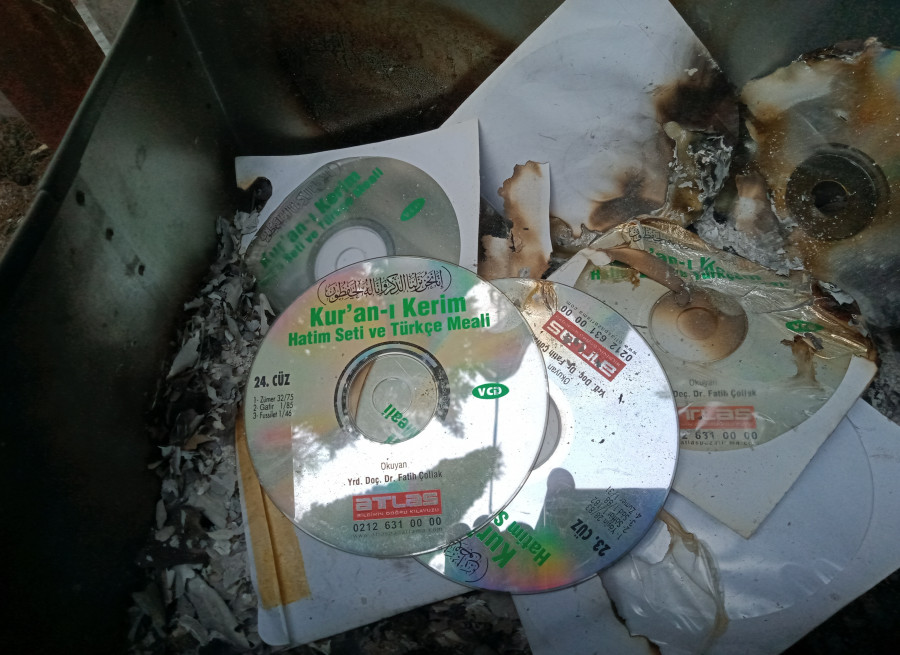 Bursa'nın Mustafakemalpaşa ilçesinde bulunan Adile Mezarlığındaki Yasin cüzleri ve Kuran-ı Kerim CD'leri yakıldı.