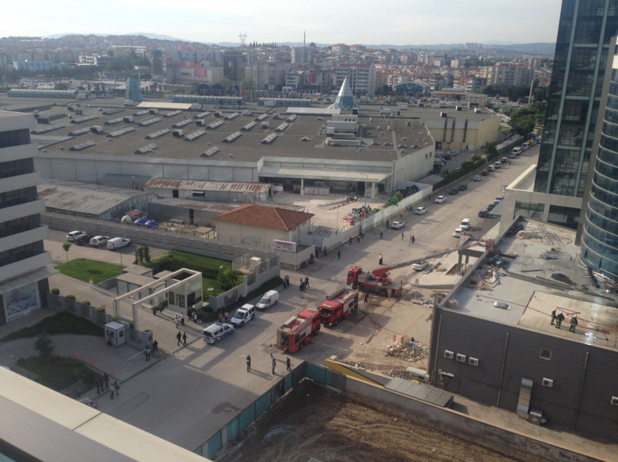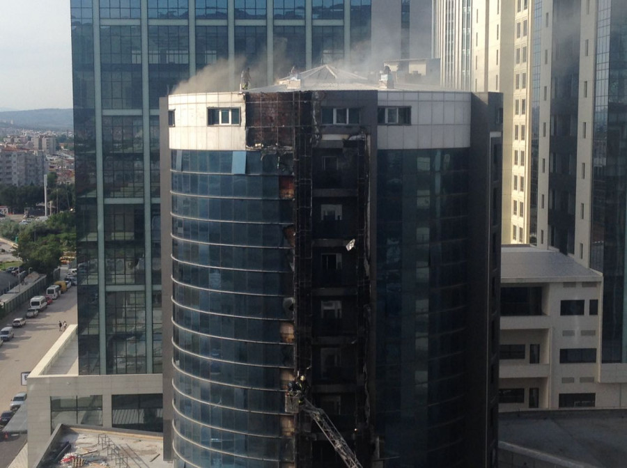 Bursa'nın Nilüfer ilçesindeki inşaatı süren Ramada Otel'in şantiyesinde henüz nedeni belirlenemeyen bir sebeple yangın çıktı.