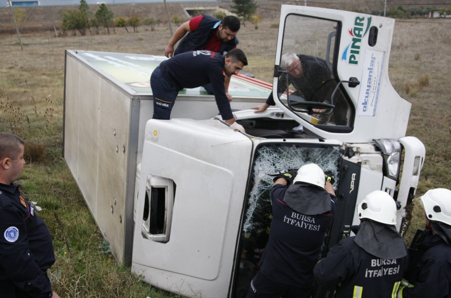 Devrilen kamyonetin sürücüsü Suat Altınkanat ve yanındaki Erhan Polat (30) kazada yaralandı. Polat araçtan kendi imkanları ile çıktı. Sürücü için ise itfaiyeden yardım istendi. Kaza yerine itfaiye, polis ve 112 ekipleri sevk edildi. Sağlık ekiplerinin ilk müdahaleyi kamyonetin içinde yaptığı yaralı sürücü, ön cam kırılarak araçtan çıkarıldı. Ambulansa alınan sürücü ve arkadaşı Orhangazi Devlet Hastanesi'ne kaldırıldı. Yaralıların sağlık durumunun iyi olduğu öğrenilirken, kazayla alakalı tahkikat başlatıldı.