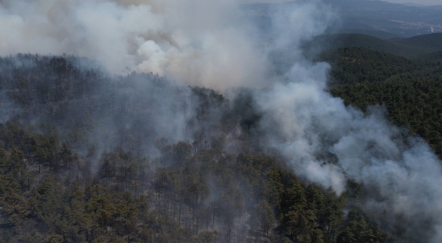 Büyükorhan'da ise 350 futbol sahası büyüklüğünde, 250 hektar alan zarar gördü