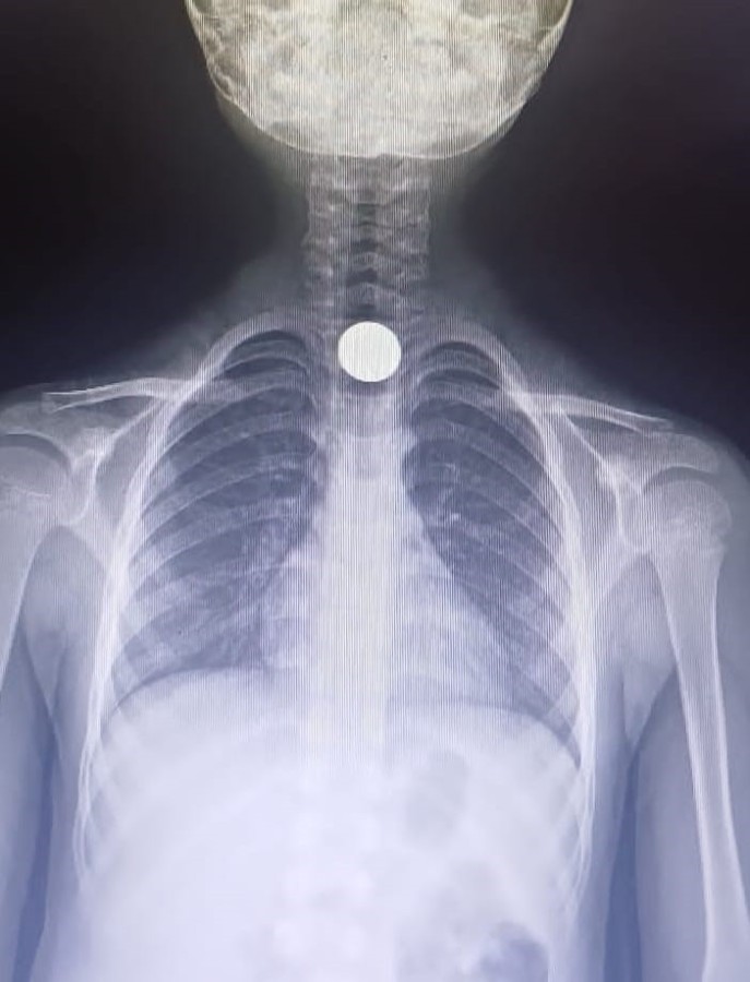 Parayı yutan Yusuf, bir anda fenalaştı. Durumu fark eden aile, çocuğu otomobille İnegöl Devlet Hastanesi'ne götürdü. Hastanede doktorlar tarafından yapılan tetkiklerde paranın yemek borusuna takıldığı tespit edildi.