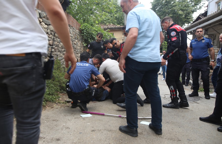 Olay, merkez Osmangazi ilçesi Tayakadın Mahallesi'nde meydana geldi. Edinilen bilgiye göre, mahalle sakinleri bir evden kötü kokuların gelmesi üzerine durumu Osmangazi Belediyesi'ne bildirdi. Bunun üzerine kötü kokuların geldiği eve Belediye ekipleri ve Zabıta ekipleri sevk edildi. İddiaya göre, akli dengesi yerinde olmayan ev sahibi Feyzullah Y. (80) belediye ekiplerine bıçak çekerek eve girmelerini engelledi. Bunun üzerine olay yerine polis ekibi sevk edildi. Olay yerine gelen polis ekibine de direnen Feyzullah Y. polis memurunu bileğinden bıçakla yaraladı.