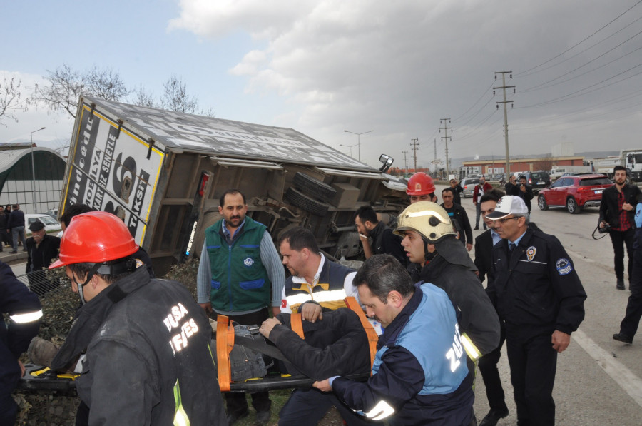 Edinilen bilgiye göre, Ebru Şirin idaresindeki 16 LF 729 plakalı özel otomobil, pazar yeri mevkiinde kontrolden çıktı. Savrulan otomobil orta refüje çıkıp koruma tellerini yırtarak karşı şeride geçti. Karşı şeride geçen otomobil, Ankara istikametinden gelip Bursa istikametine seyir halinde olan Ramazan Çıbık idaresindeki 61 VS 256 plakalı kamyonetle çarpıştı. Çarpışmanın etkisiyle savrulan kamyonet orta refüje devrildi.