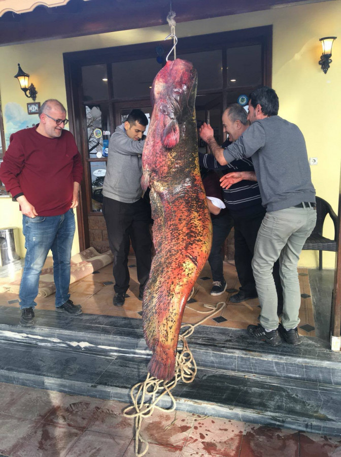 Sezonun başından beri ilk kez bu kadar büyük bir balığın yakalandığı öğrenildi. 110 kilo ağırlığında ve 2 metre 10 santim boyundaki dev balığın restorana kilosu 30 TL'den 3 bin 300 TL'ye satıldığı öğrenildi.