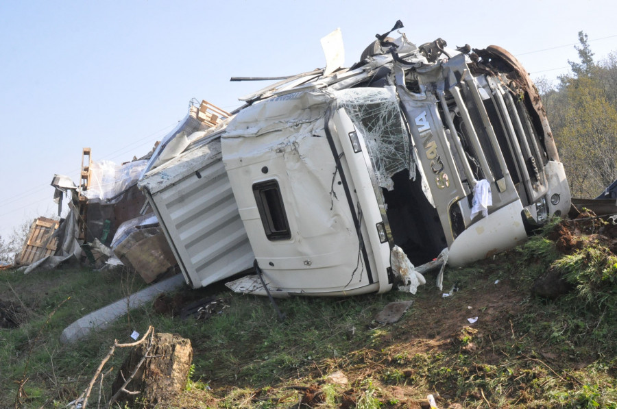 Edinilen bilgiye göre, İnegöl Organize Sanayi Bölgesi'nden karton yükledikten sonra Bandırma'ya doğru yola çıkan Ferhat Kartal idaresindeki 16 KDN 04 plakalı TIR, İnegöl-Bursa karayolu üzeri Ümitalan mevkiinde rampadan aşağıya inerken, direksiyon hakimiyetinin kaybolması sebebiyle kontrolden çıkarak devrildi.