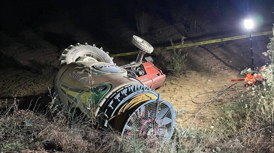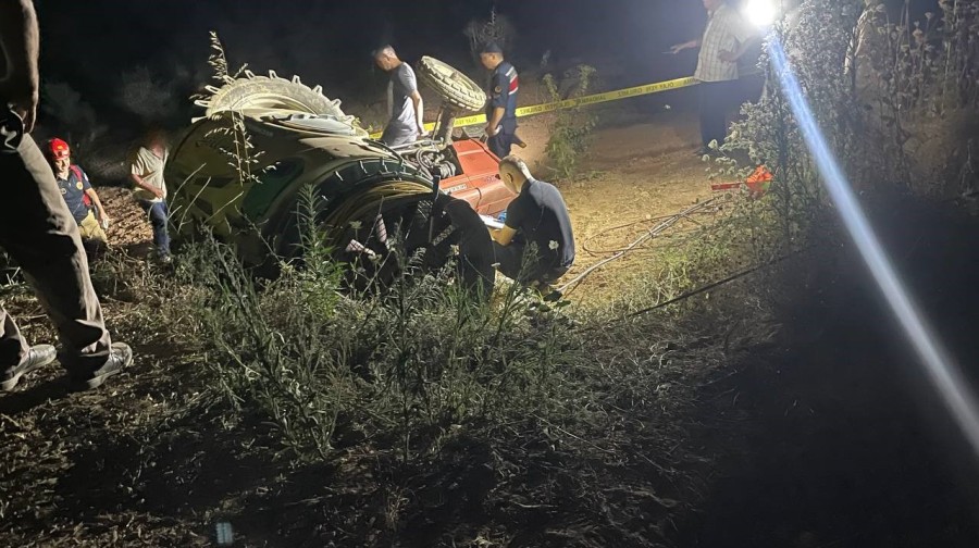 Halil Tetik'in kontrolünü kaybettiği traktör devrildi.