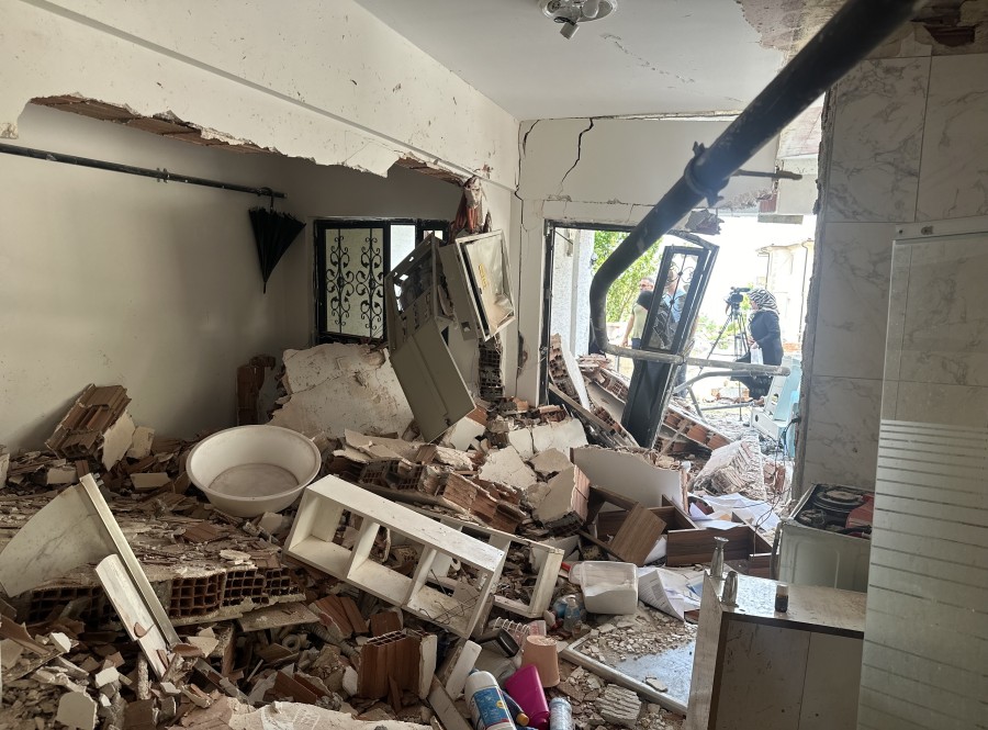 Neredeyse kullanılamaz hale gelen 3 katlı bina ise havadan dron ile görüntülenirken, facianın büyüklüğü gözler önüne serildi.