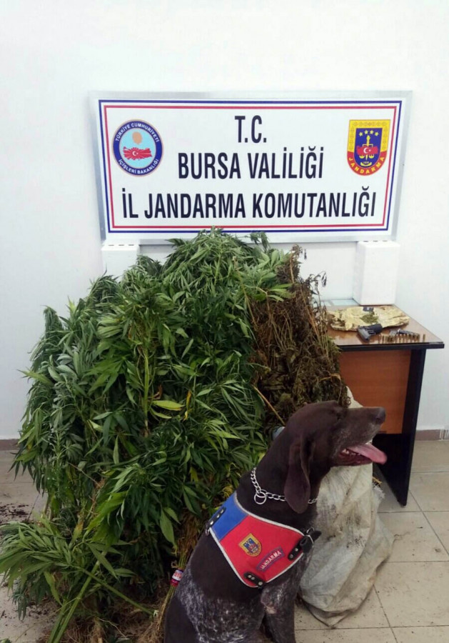 Bursa'da uyuşturucu imalatı ve ticareti yaptığı tespit edilen şahıs drone ve uyuşturucu arama köpeği ile yapılan operasyon sonucu yakalandı.