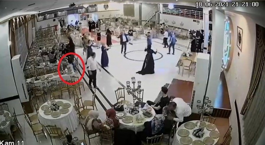 Bursa'da düğün salonunda küçük kız çantayı alıp kaçtı. O anlar güvenlik kamerasına anbean yansıdı.