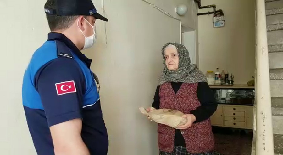 Osmangazi Belediyesi, iki günlük sokağa çıkma yasağı nedeniyle evlerinde kalan vatandaşlara yardım eli uzattı. Yoğun mesaileri sırasında birbirinden farklı hikayelere tanıklık eden Zabıta Müdürlüğü ekipleri, evine ekmek götürdükleri Hanife Teyze'yi duygulandırdı.