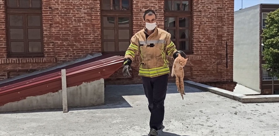 Keresteciler Arka Sokak'ta bulunan Taş Mektep'in yanındaki binanın çatısında 3 günden beri görülen kedinin inemediği fark edildi. Durum ekiplere bildirilirken itfaiye ve polis ekiplerinin ortak çalışması ile kedi mahsur kaldığı çatıdan indirildi. İl başta itfaiye çalışanından korkarak çatının altına saklanan kedi sonra yakalandı. Kedi bakılması için mahalle sakinlerine teslim edildi. Kurtarma anı ise saniye saniye kaydedildi.