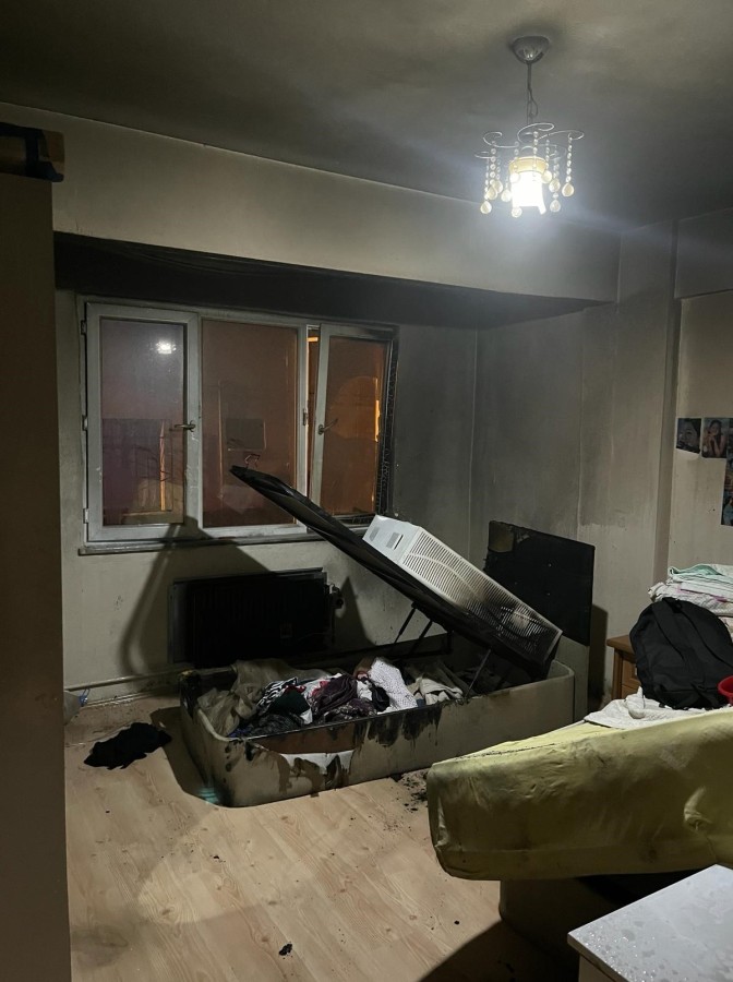 Yangında can kaybı meydana gelmezken, evde maddi hasar meydana geldi. R.A., polis ekiplerince yakalanarak gözaltına alındı. İfadesinin ardından R.A., adliyeye sevk edildi.