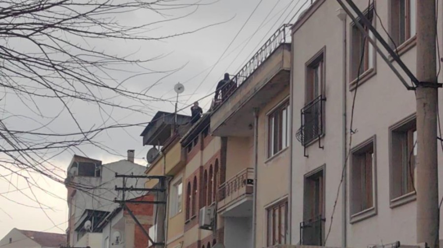 Bursa'nın İnegöl İlçesi Turgutalp mahallesinde tahliye kararı nedeniyle evinden çıkarılan kadın, intihar girişimi için çatıya çıktı.
