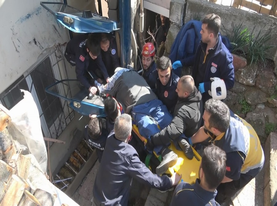 İhbar üzerine olay yerine gelen itfaiye ekipleri, Mehmet Ulu'yu sıkıştığı yerden 30 dakikalık çalışma sonrası çıkardı. Ulu, sağlık ekiplerinin olay yerinde yaptığı ilk müdahale sonrası ambulans ile Çekirge Devlet Hastanesi'ne kaldırıldı. Yaşlı adamın sağlık durumunun iyi olduğu bildirildi.