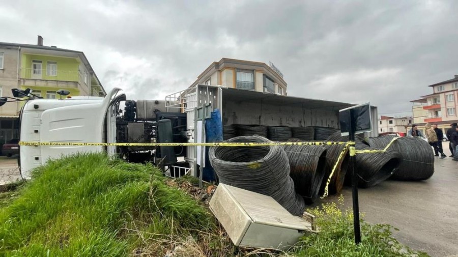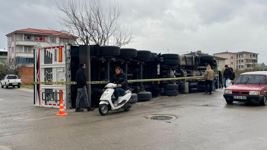 Edinilen bilgiye göre, Samet Bozgül (32) idaresindeki 10 DAS 47 plakalı tır, viraja hızlı girince sürücüsünün kontrolünden çıkarak dorsesinde bulunan demirler ile birlikte yan yattı.