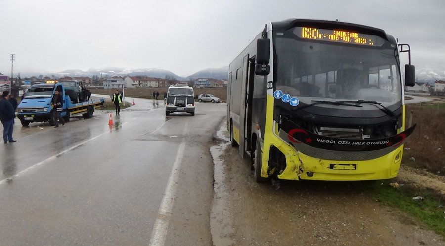 Kaza, İnegöl Karalar yolunda meydana geldi. Rahatsızlanan hamile eşini hastaneye götürmek için 34 LHM 28 plakalı aracıyla yola çıkan Eyüp Demirkol, Karalar yolu üzerinde özel halk otobüsü ile kafa kafaya çarpıştı. Kazada sürücü ile eşi Çiğdem Demirkol yaralandı. Hurdaya dönen araçtan çıkarılan yaralılar ambulansa Devlet Hastanesine kaldırıldı. Bebeği kaybetme riski olan yaralı kadın doğum servisine kaldırıldı. Hurdaya dönen otomobil ise kaza yerine gelen çekiciyle kaldırıldı. Kazayla alakalı tahkikat sürüyor.