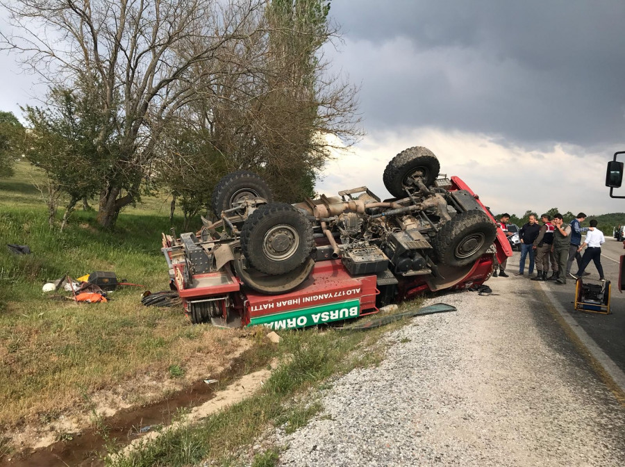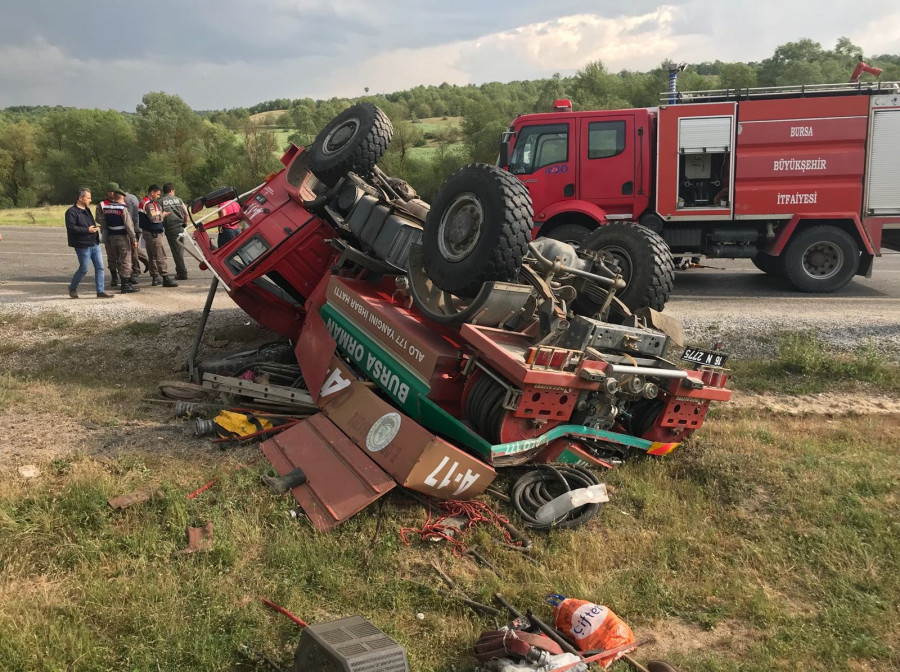Bursa'da Orman Bölge Müdürlüğü'ne ait yangın arazözünün devrilmesi sonucu biri ağır 4 kişi yaralandı.