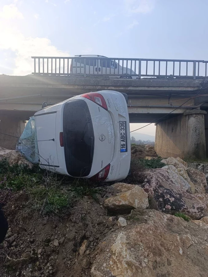 İnegöl'ün Kurşunlu Mahallesi yolu üzerinde saat 09.00 sıralarında meydana gelen kazada, Buse D. (23) yönetimindeki 16 ABC 336 plakalı hafif ticari araç, sürücünün direksiyon hakimiyetini kaybetmesi sonucu köprünün demir korkuluklarına çarptı ve dere yatağına uçtu.