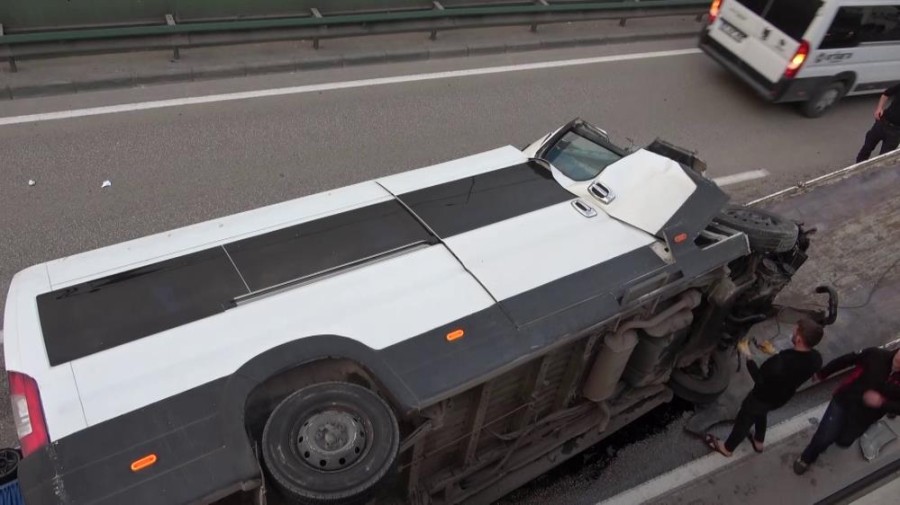 Bursa'da direksiyon hâkimiyetinin kaybedilmesiyle önce bariyerlere ardından öndeki minibüse çarpan minibüs devrildi. Devrilen minibüsün sürücüsü yaralandı.